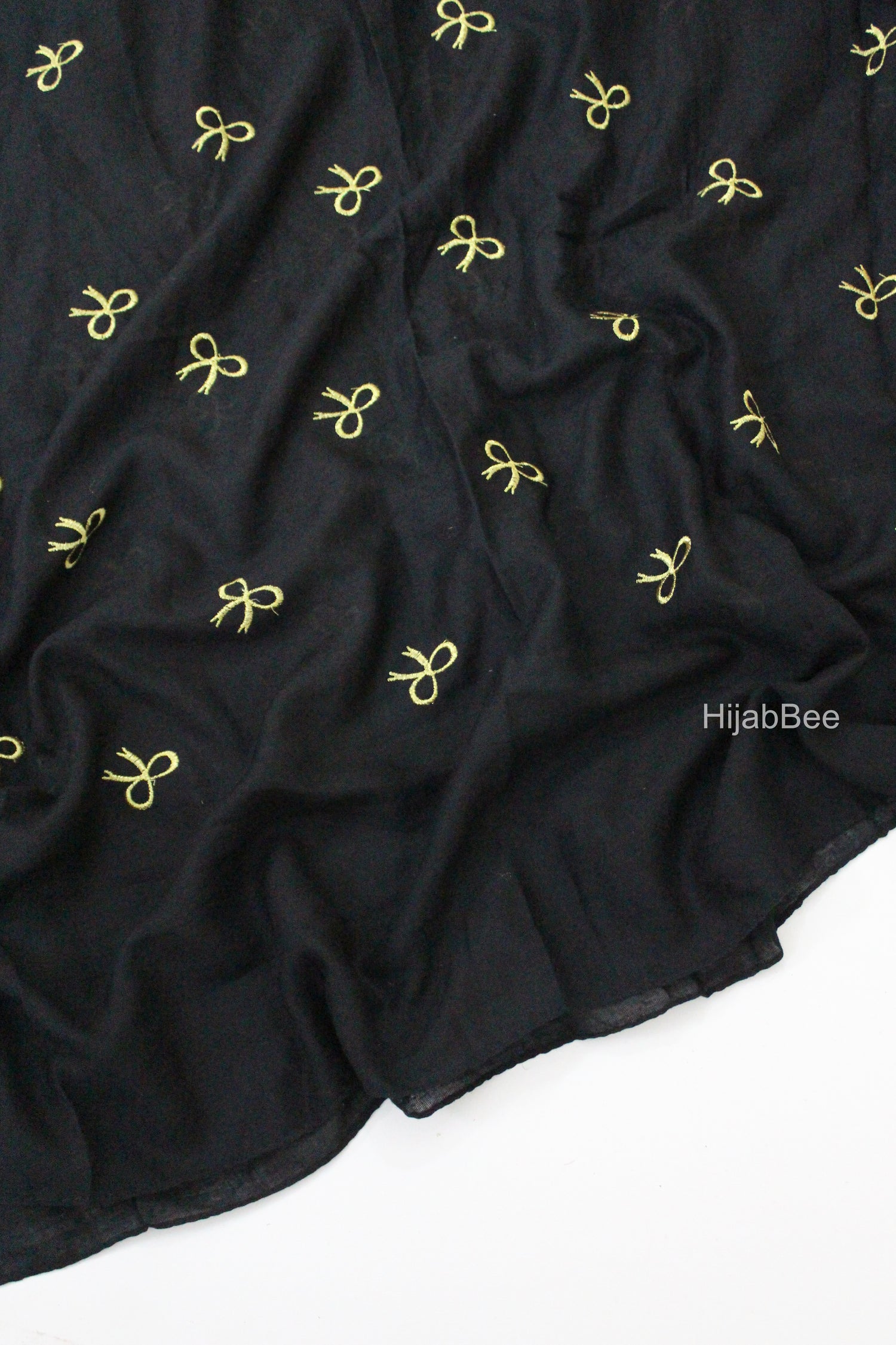 Details: Little golden embroidery bows all over the hijab.