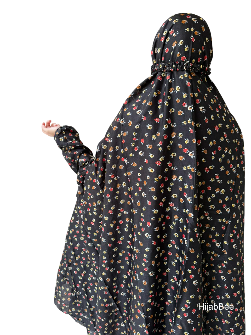 The elastic sleeves ensure that your wrists are covered during namaz. It has an elastic band around the neck that makes sure that your chadar stays in it's place.